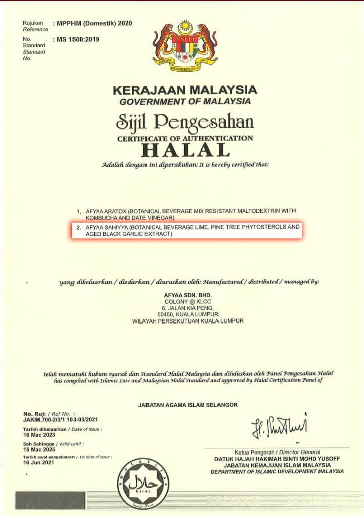 3 Bahan Utama Afyaa Sahiyya menggunakan formula khas hasil dari kajian penyelidikan team Dr Sheikh Muszaphar.
