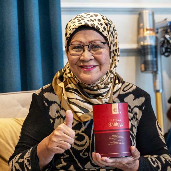 A: Afyaa Sahiyya membantu untuk menyembuhkan penyakit-penyakit kronik, dan dapat tingkatkan tahap kesihatan darah dalam tubuh anda. Amalkan Sahiyya untuk selesaikan masalah penyakit kronik, dan boleh terus diamalkan sebagai suplimen untuk tahap kesihatan yang optimum.